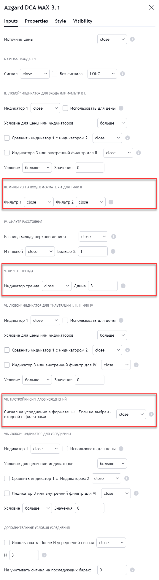- убраны чек-боксы "использовать как фильтр" - теперь если в меню нет выбранных индикаторов и стоит значение "close", то блок пропускает сигнал от вышестоящих блоков без изменений.