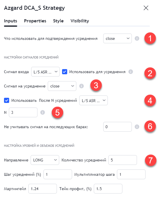 - Выбор значения, которое должно быть ниже очередного уровня усреднения при наличии сигнала на усреднение. Если выбран, например, "low", то сигнал на усреднение будет учитываться по шипу, но само усреднение будет срабатывать только на закрытии свечи (правила трейдингвью), поэтому очередное усреднение может быть выше предыдущего.