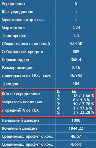 - величина усреднений настраивается мартингейлом