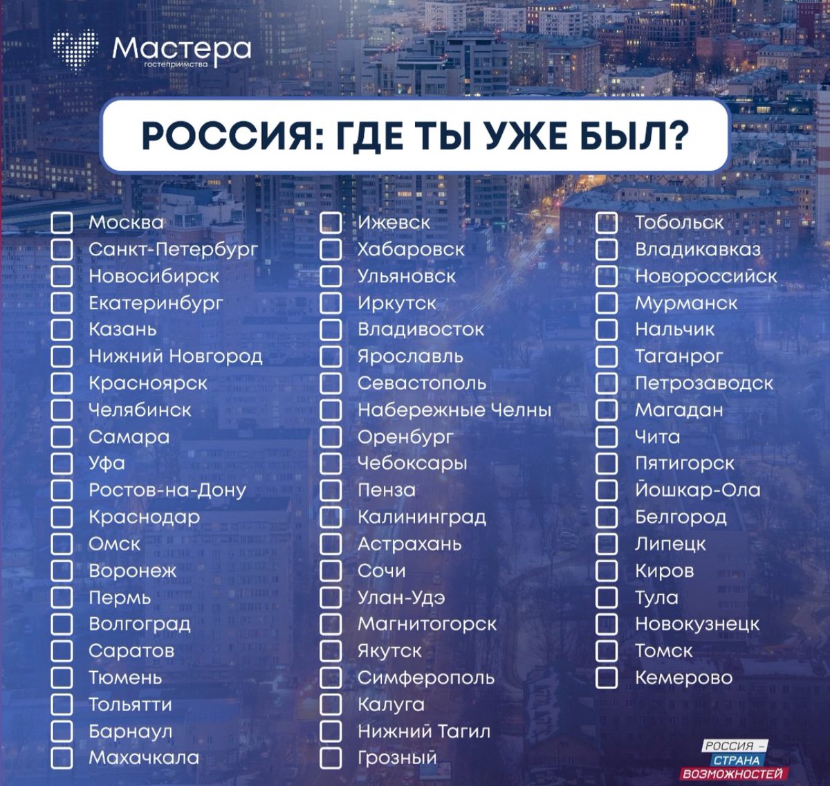де отмечать посещенные города