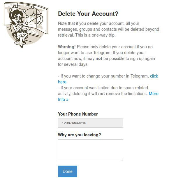 - إذا كنت ترغب في تغيير رقمك في تيليجرام فلا داعي لحذف حسابك. قم بالاطلاع على هذا.