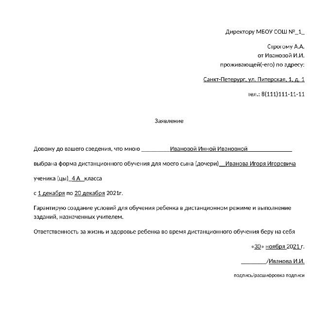 2. Заполнение заявления