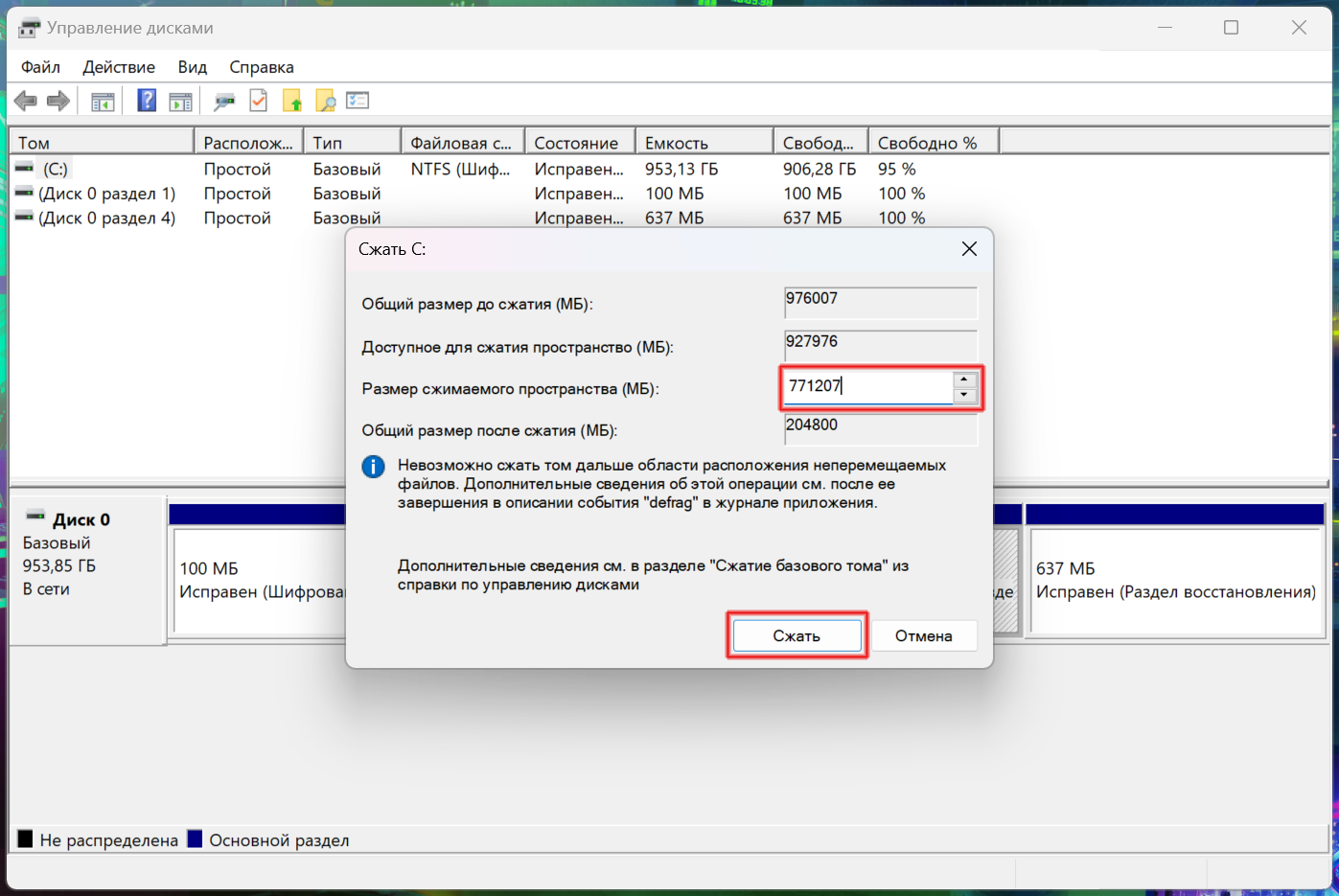 Совет: под диск C лучше всего оставить не меньше 150 Гб