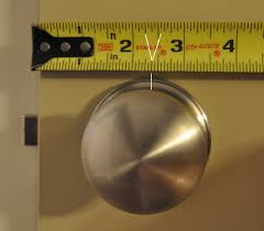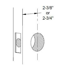 The backset is the distance from the edge of the door to the center of the 2-1/8-inch bore hole. In the United States, there are two common backsets for residential door locks: 2 3/8 inches and 2 3/4 inches. Pack your locks with a 2-3/8-inch or 2-3/4-inch latch, depending on which backset you specify. Dummy sets have no latch and are surface-mounted so you can install a dummy set wherever you choose on the door. The door prep is a set of drilled holes in the door, where the latch will fit in. If you’re replacing existing locks, then your door preps will most likely be correct for most locks. Just determine the backset, and you're ready to buy or order. If you're installing locks in new doors that don’t have a door prep, you can follow the instructions below. Passage, privacy, key-in-knob, or lever, and deadbolt locks Fit into the door prep shown above.������ Bore a 2-1/8-inch hole through the door. The center of this hole should be located 2 3/8 inches or 2 3/4 inches back from the edge of the door.