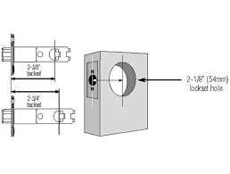 Check out the links below. 2" Backset Single Cylinder Lock. 2" Backset Double Cylinder LockIssue 232 - Dec 2012/Jan 2013 Boring and mortising a door for a knob or lock is not a hard job, but if you get the holes in the wrong spot, you’re in for a tough fix. You might even have to buy a new door. Fortunately, it’s easy to get the holes right if you pay attention to two critical dimensions and use the paper layout template that comes with the door.You need a 2-1⁄8-in. hole saw and a 1-in. spade bit for making the holes. A few dead bolts need a 1-1⁄2-in. hole saw instead of a 2-1⁄8-in. hole saw, though, so check the instructions to make sure you have the right one. The first critical dimension you need to know is the door thickness. Exterior doors are generally 1-3⁄4-in. thick. Most interior doors are 1-3⁄8-in. thick. When it’s time to mark the door for boring, choose the mark on the template that corresponds to the door thickness. If the door is thinner than 1-3⁄8-in. or thicker than 1-3⁄4-in., you’ll likely need a special-order lock.
