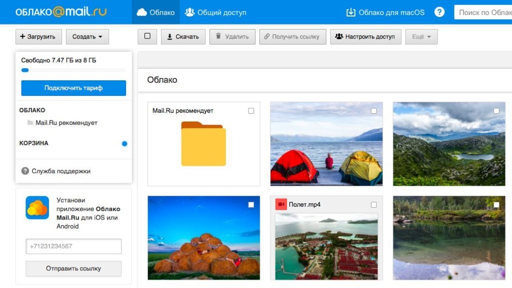 «Облако.Mail.Ru» — ещё один популярный облачный сервис. Он хранит данные в нескольких резервных копиях, что гарантирует их сохранность. А также работает как файлообменник: в нем можно делиться документами через общие папки и публичные ссылки.