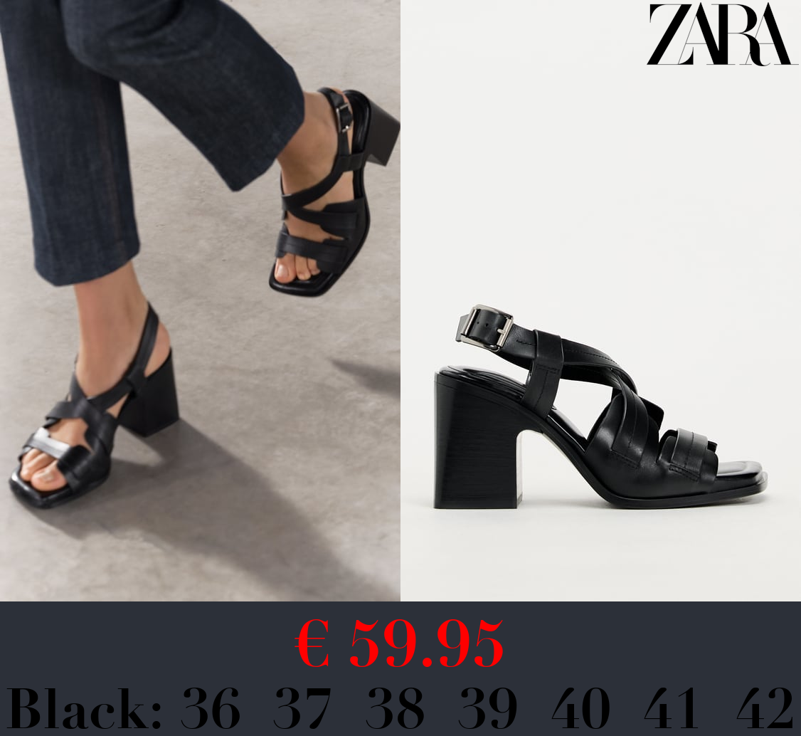 € 59.95 LEATHER SANDALS WITH BLOCK HEEL