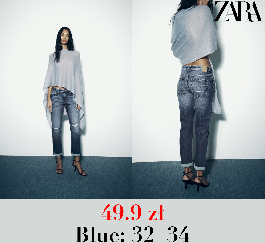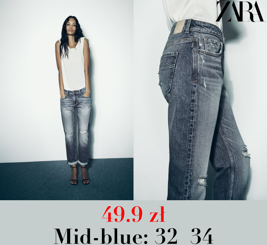 49.9 zł Z1975 RIPPED SPLIT-HEM LOW-RISE JEANS