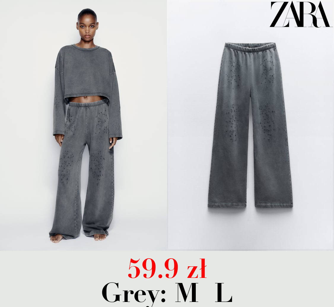 59.9 zł FADED-EFFECT RIPPED PLUSH TROUSERS