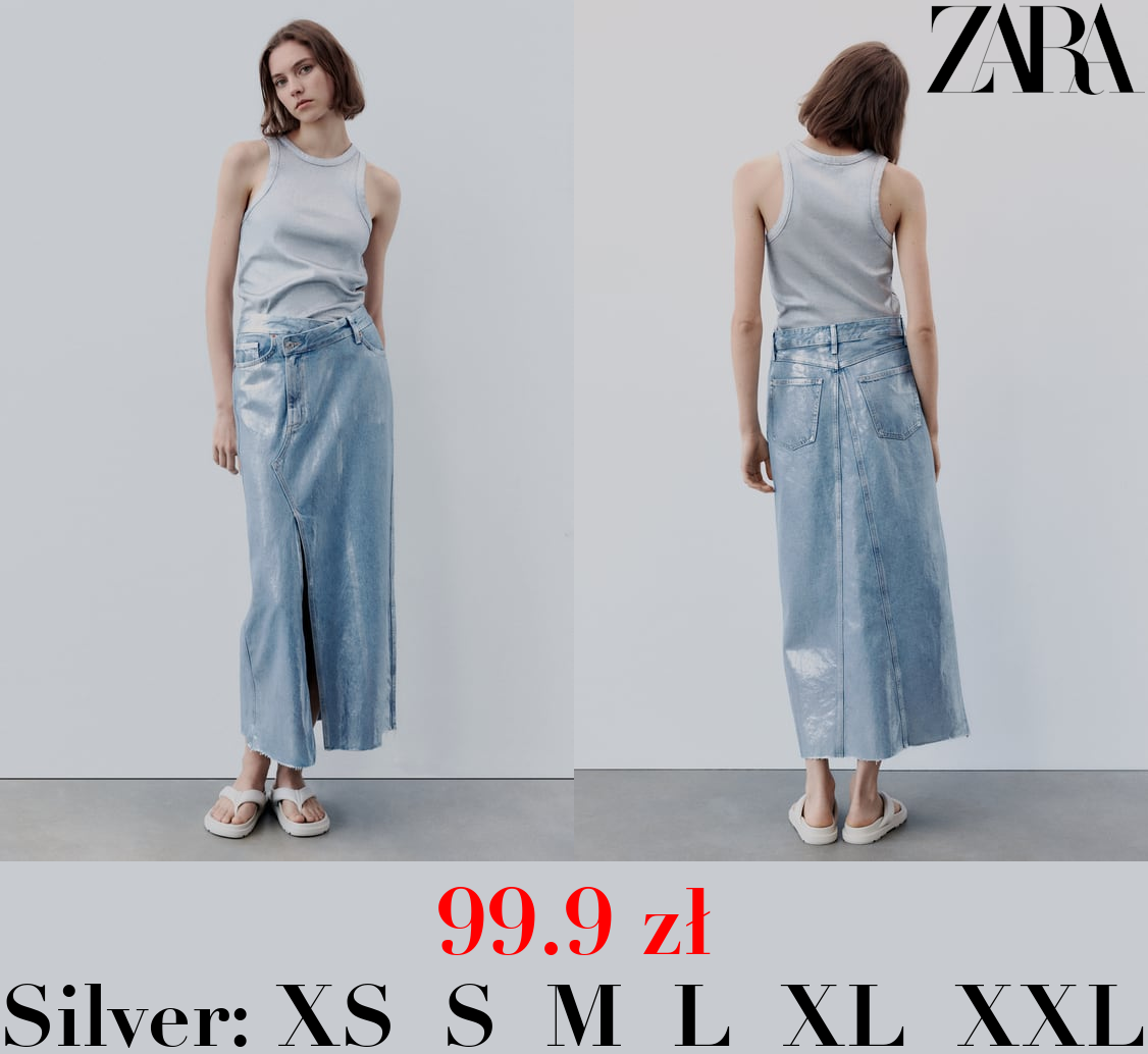 99.9 zł TRF ASYMMETRIC DENIM METALLIC SKIRT