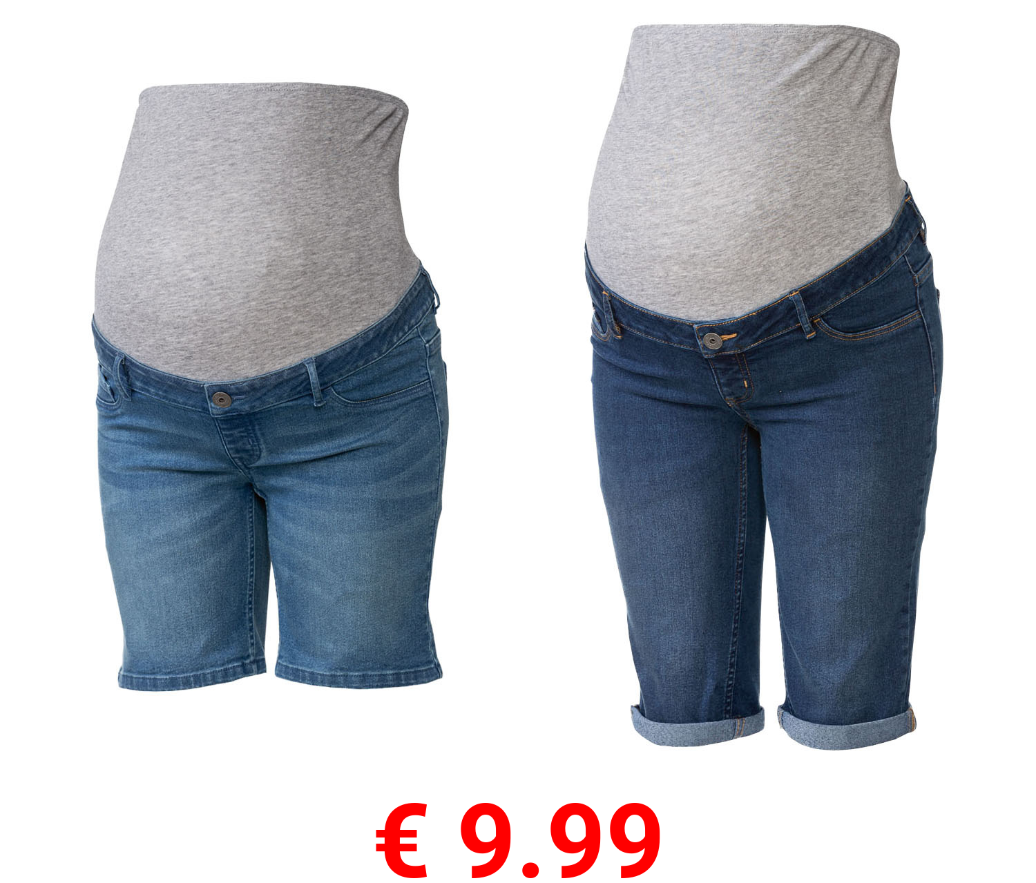 € 9.99 esmara® Damen Umstands-Jeansshorts, niedrige Leibhöhe mit elastischem Besatz