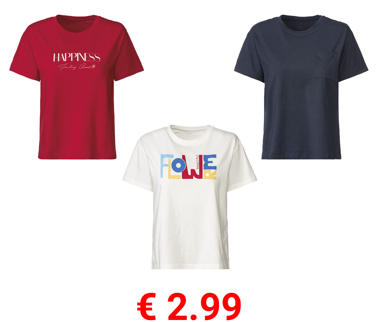 € 2.99 esmara® Damen T-Shirt aus reiner Baumwolle