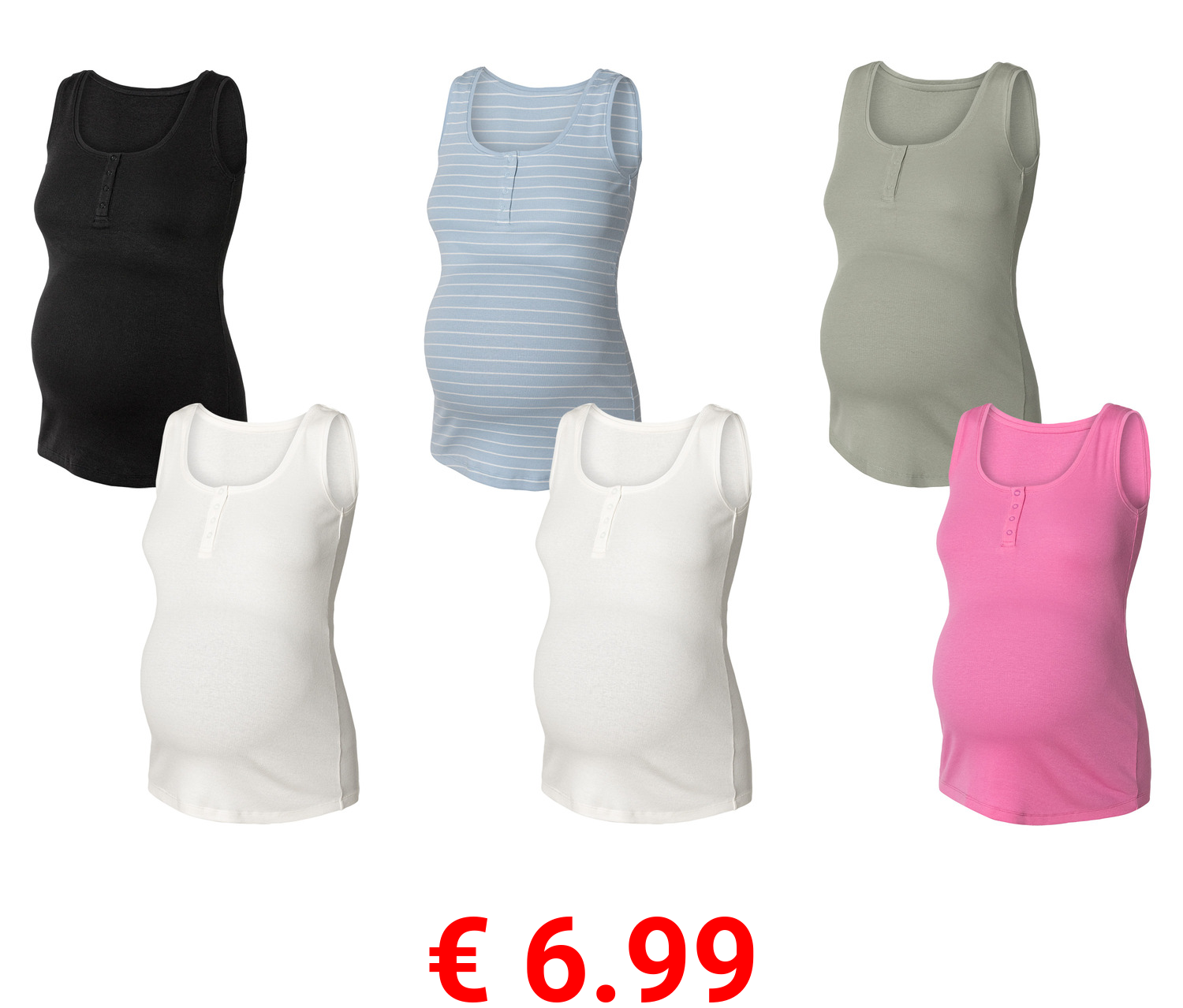 € 6.99 esmara® Damen Umstands-Ripptops, 2 Stück, mit Baumwolle