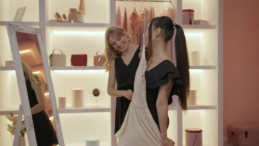 Three girlfriends talking in the dressing room 117 photos