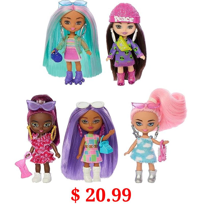 $ 20.99 Barbie Five Barbie Dolls, Barbie Extra Mini Minis Bundle, Small Dolls with Colorful Fashions and Accessories