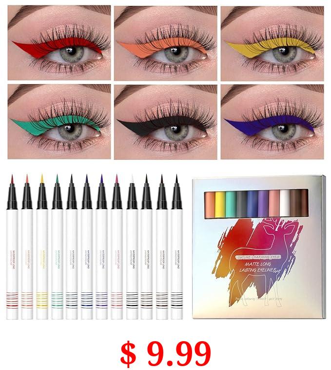 $ 9.99 12 Pcs Colorful Eyeliner, Ofanyia Rainbow Colorful Matte Liquid Eyeliner Set, Waterproof Long-lasting Smudge Proof Highly Pigmented Colored Eyeliner Pencil Quick Dry Eye Makeup Pen (12 Colors Eyeliner Pencil)