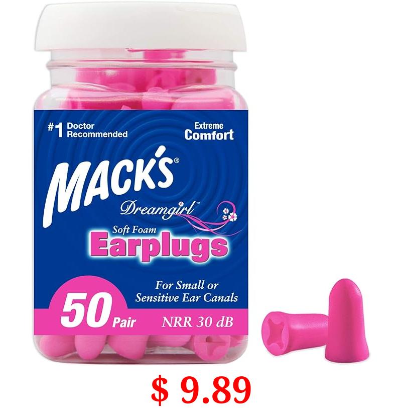 $ 9.89 Mack's Dreamgirl Soft Foam Earplugs, 50 Pair, Pink - Small Ear Plugs for Sleeping, Snoring, Studying, Loud Events, Traveling & Concerts