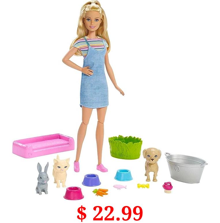 $ 22.99 Barbie Play 'N Wash Pets Doll & Playset with 3 Color-Change Animals & 10 Accessories, Blonde Doll with Blue Eyes