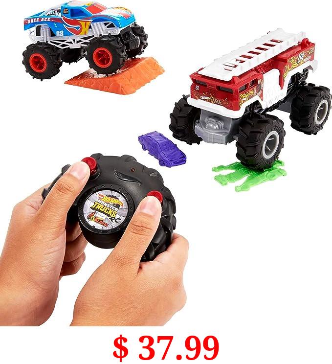 $ 37.99 Hot Wheels RC Monster Trucks 2-Pack, 1 Race Ace & 1 HW 5-Alarm in 1:24 Scale, Full-Function Remote-Control Toy Trucks