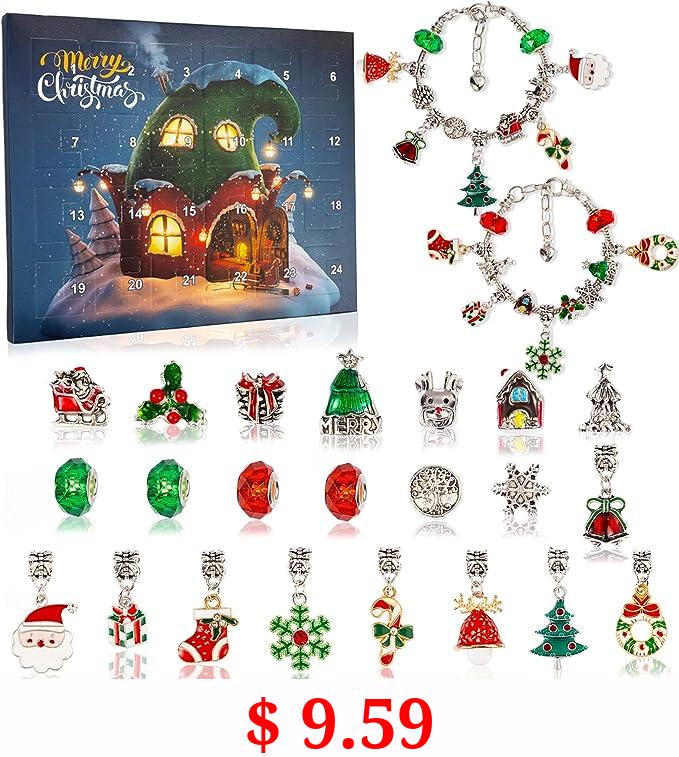 $ 8.99 Christmas Advent Calendar 2023, 24 Days Countdown Calendar, DIY Jewelry Making Kit Girls Gift, Christmas Jewelry Bracelet Making Kit with 22 Pendant Beads and 2 Bracelet Chains