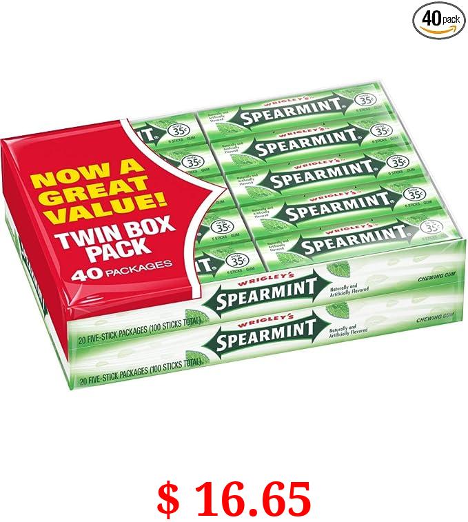 $ 16.65 Wrigley's Gum, Spearmint, 5 Count (Pack of 40)