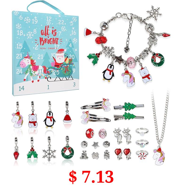 $ 7.13 Advent Calendar 2023 Girls Unicorn Charm Bracelets Making Kit for Kids Christmas Countdown Calendars, Advent Gifts DIY Beads Necklace Ring Earrings Jewelry Advent Calendar for Toddler Kids Teens Girls