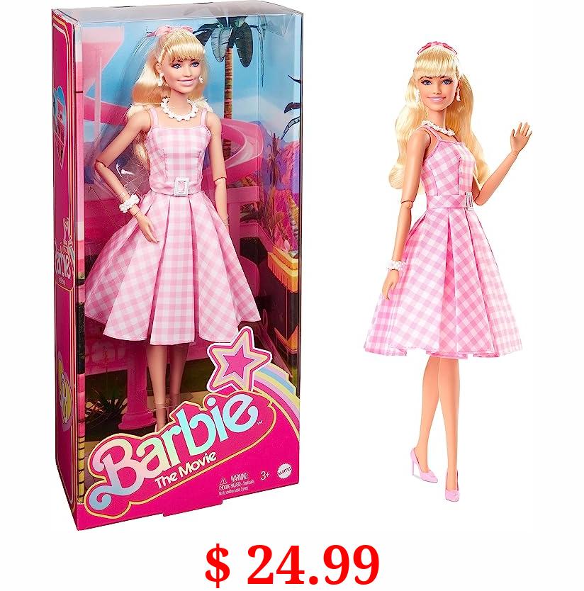 $ 24.99 Barbie The Movie Doll, Margot Robbie as Barbie, Collectible Doll Wearing Pink and White Gingham Dress with Daisy Chain Necklace for 6 years and up