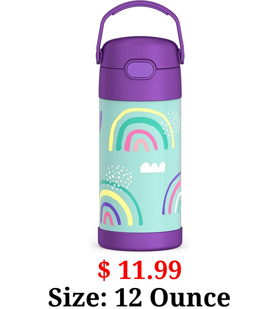 $ 11.99 Size: 12 Ounce THERMOS FUNTAINER 12 Ounce Stainless Steel Vacuum Insulated Kids Straw Bottle, Rainbows