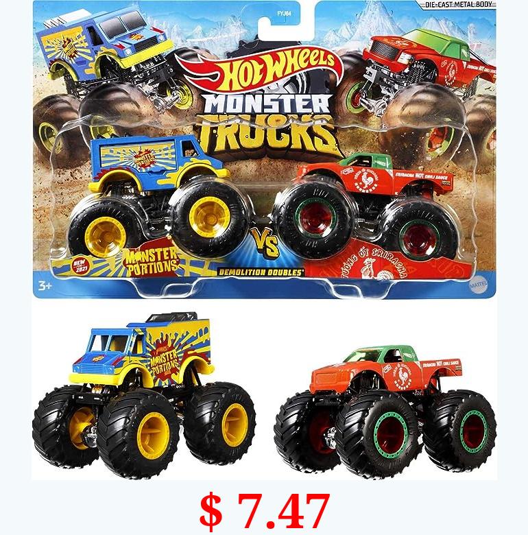 $ 7.47 Hot Wheels Monster Trucks Demolition Doubles, Set of 2 Toy Monster Trucks in 1:64 Scale (Styles May Vary)