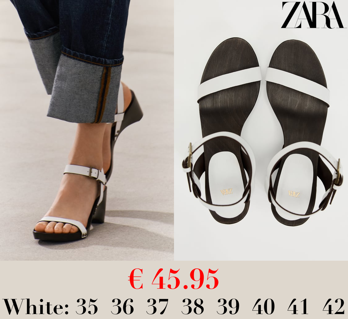 € 45.95 WOOD-EFFECT HEEL LEATHER SANDALS
