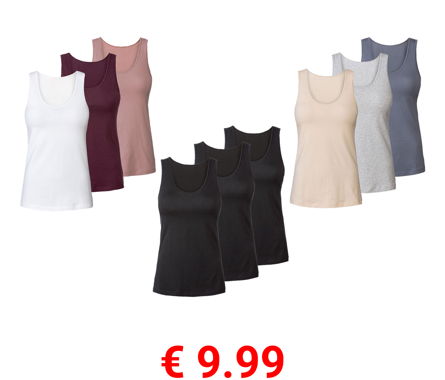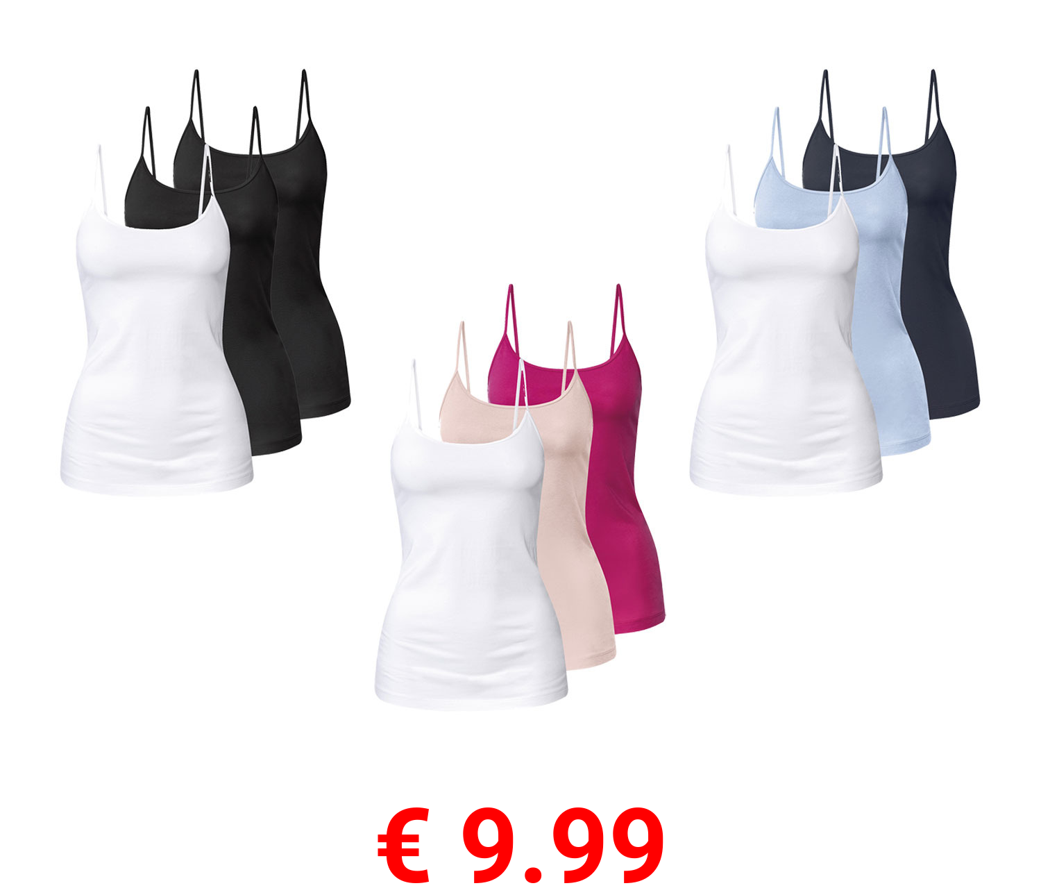 € 9.99 esmara® Damen Spaghettitops, 3 Stück, hoher Baumwollanteil