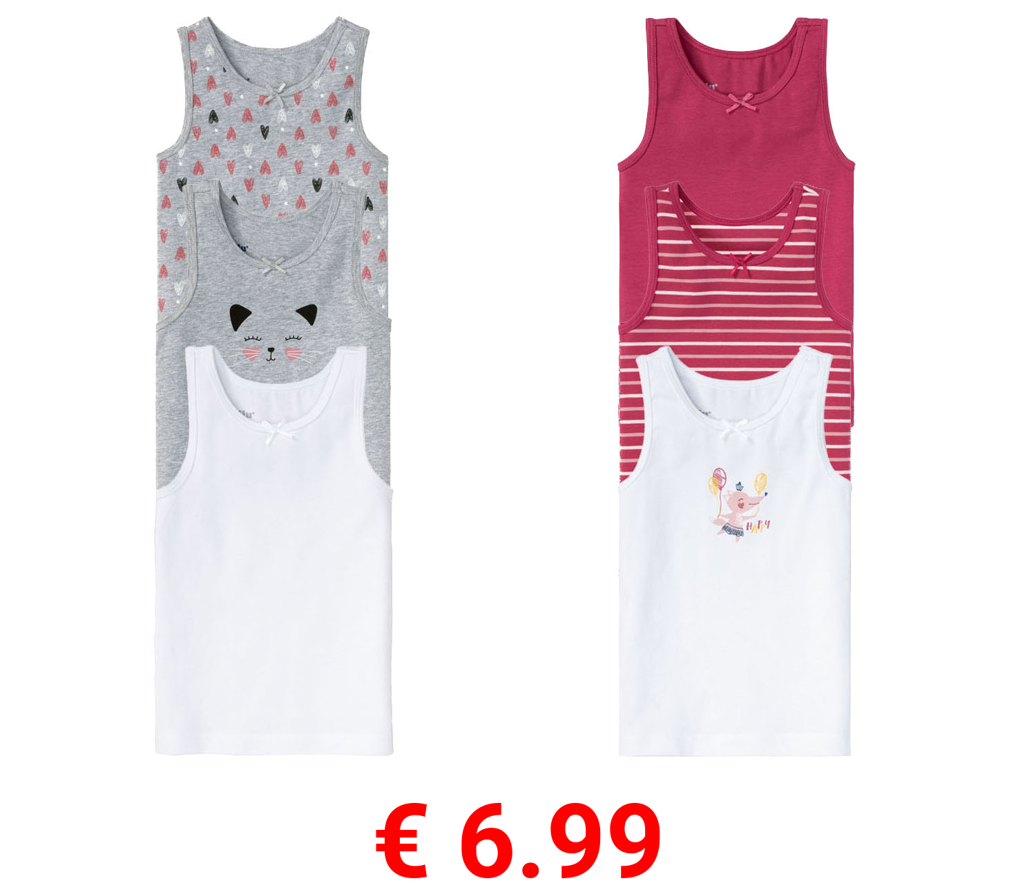 € 6.99 lupilu® Kleinkinder Mädchen Unterhemd, 3 Stück, mit hohem Baumwollanteil