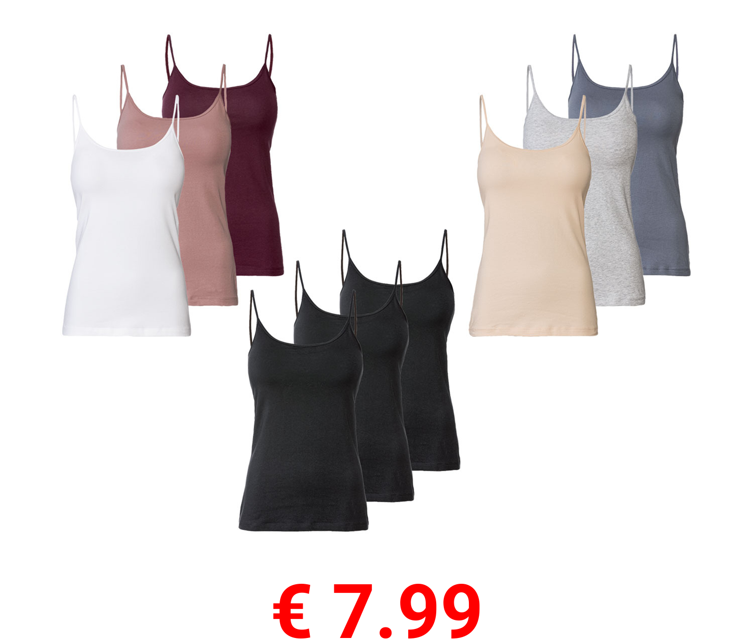 € 7.99 esmara® Damen Spaghettitops, 3 Stück, mit hohem Baumwollanteil