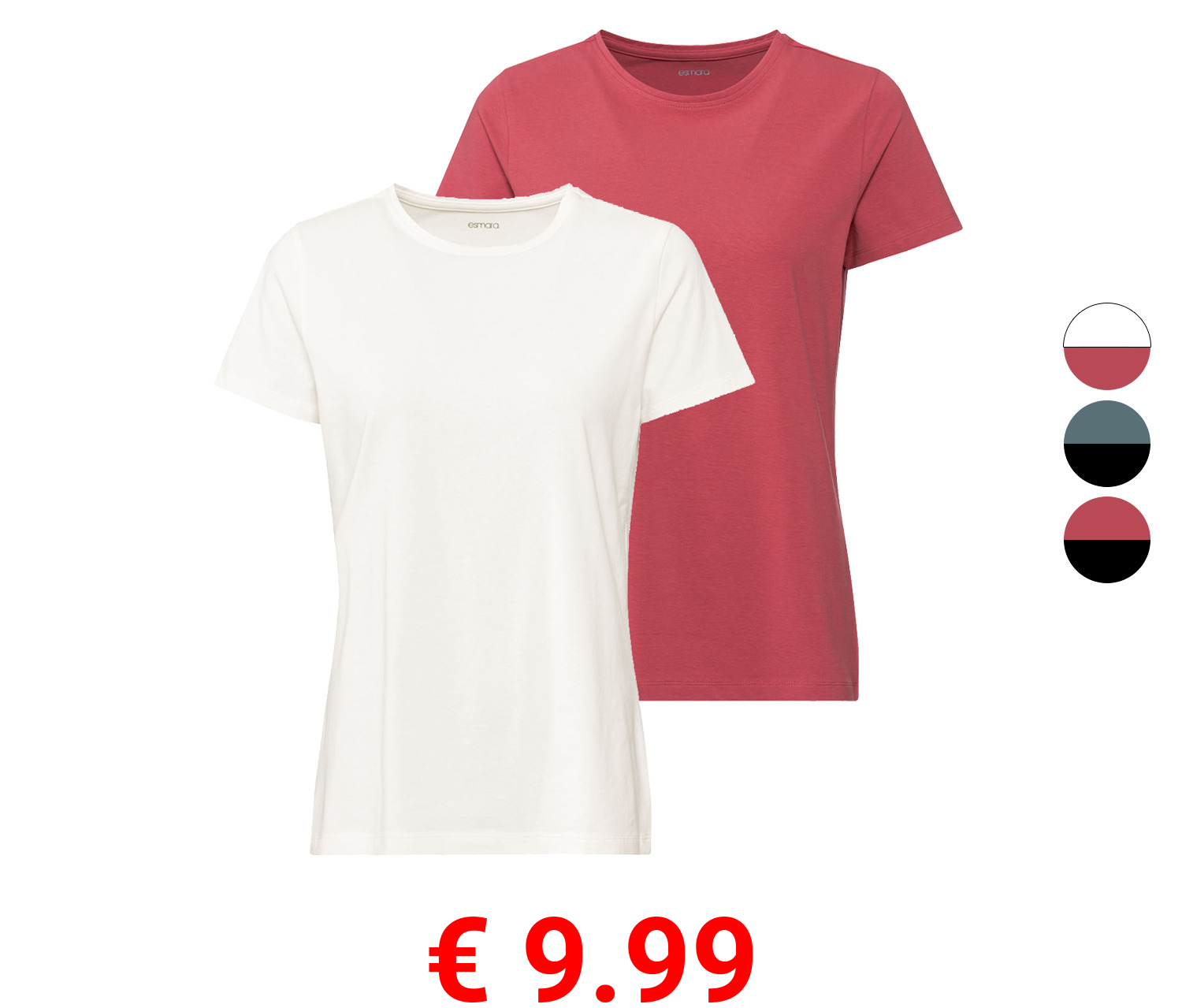 € 9.99 esmara® Damen T-Shirts, 2 Stück, figurbetont aus Stretchjersey
