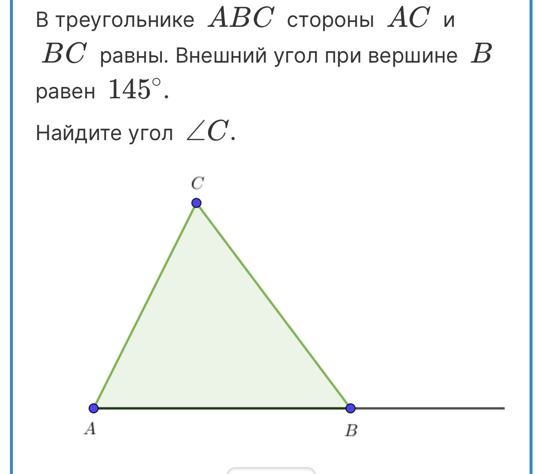енний угол треугольника при вершине а