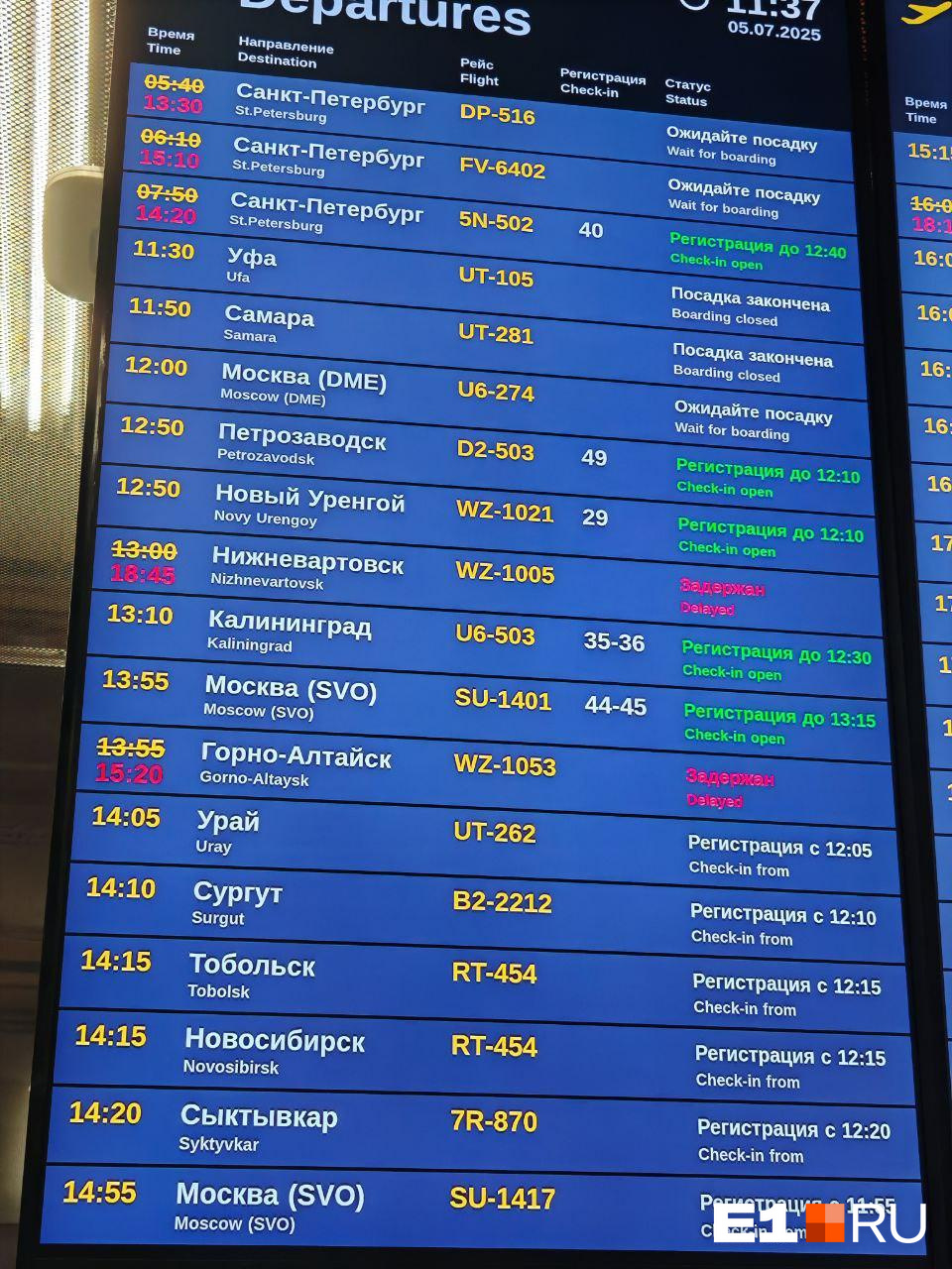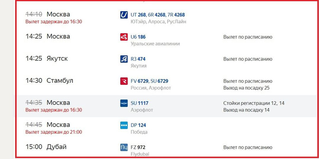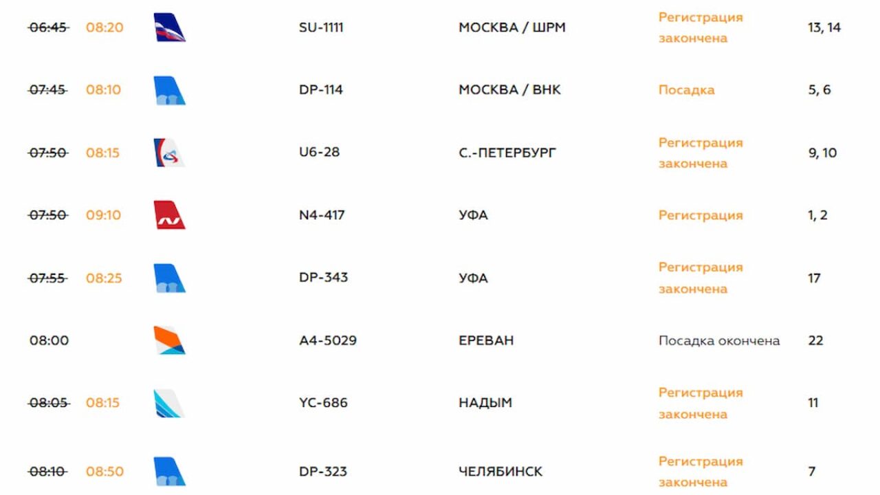 ер вылеты самолетов табло