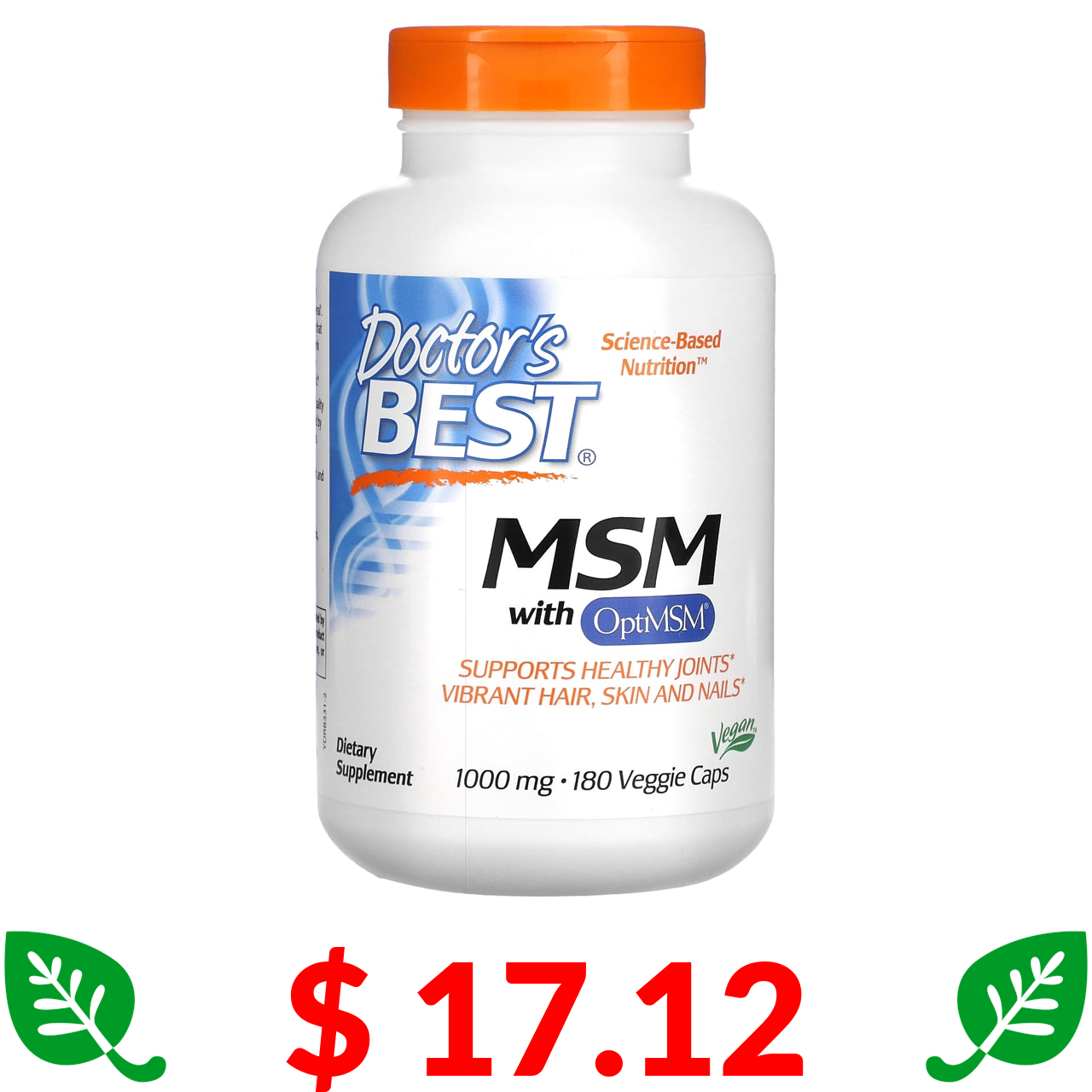 $ 17.12 Докторс Бэст, МСМ с OptiMSM, 1000 мг, 180 растительных капсул