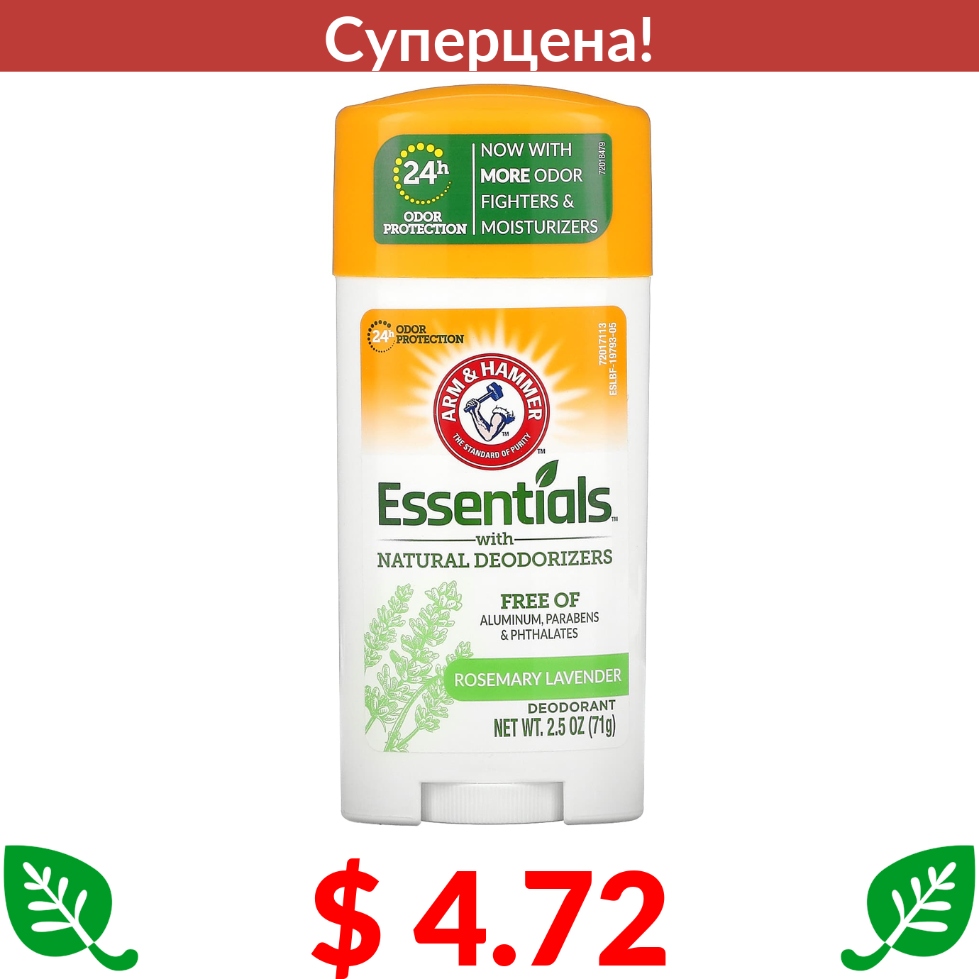 $ 4.15 Арм энд Хаммер, UltraMax, твердый дезодорант для мужчин, без запаха, 2,6 унции (73 г)