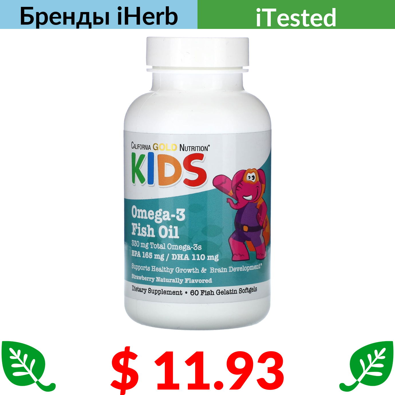 $ 4.63 California Gold Nutrition, витамин D3, 125 мкг (5000 МЕ), 90 капсул из рыбьего желатина