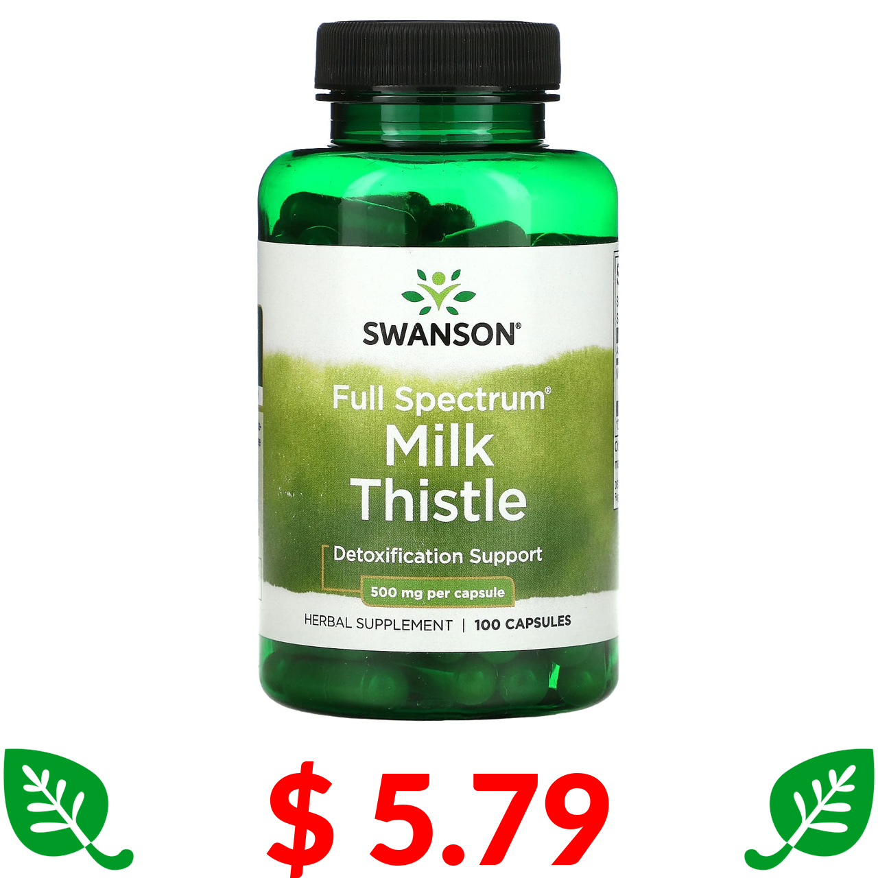 $ 5.79 Swanson, Расторопша, 500 мг, 100 капсул