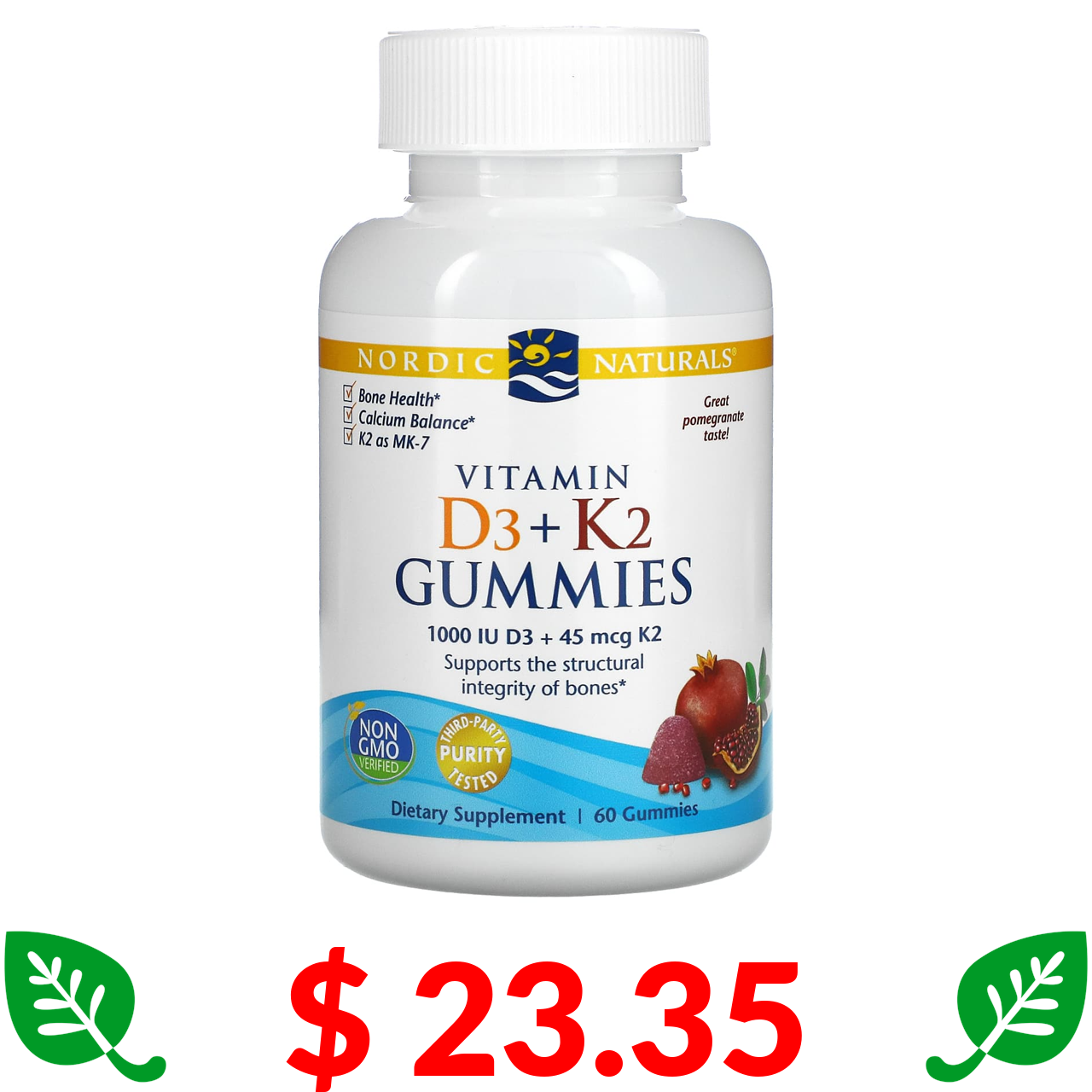 $ 23.35 Нордик Натуралс, жевательные конфеты с витаминами D3 и K2, гранат, 60 жевательных конфет
