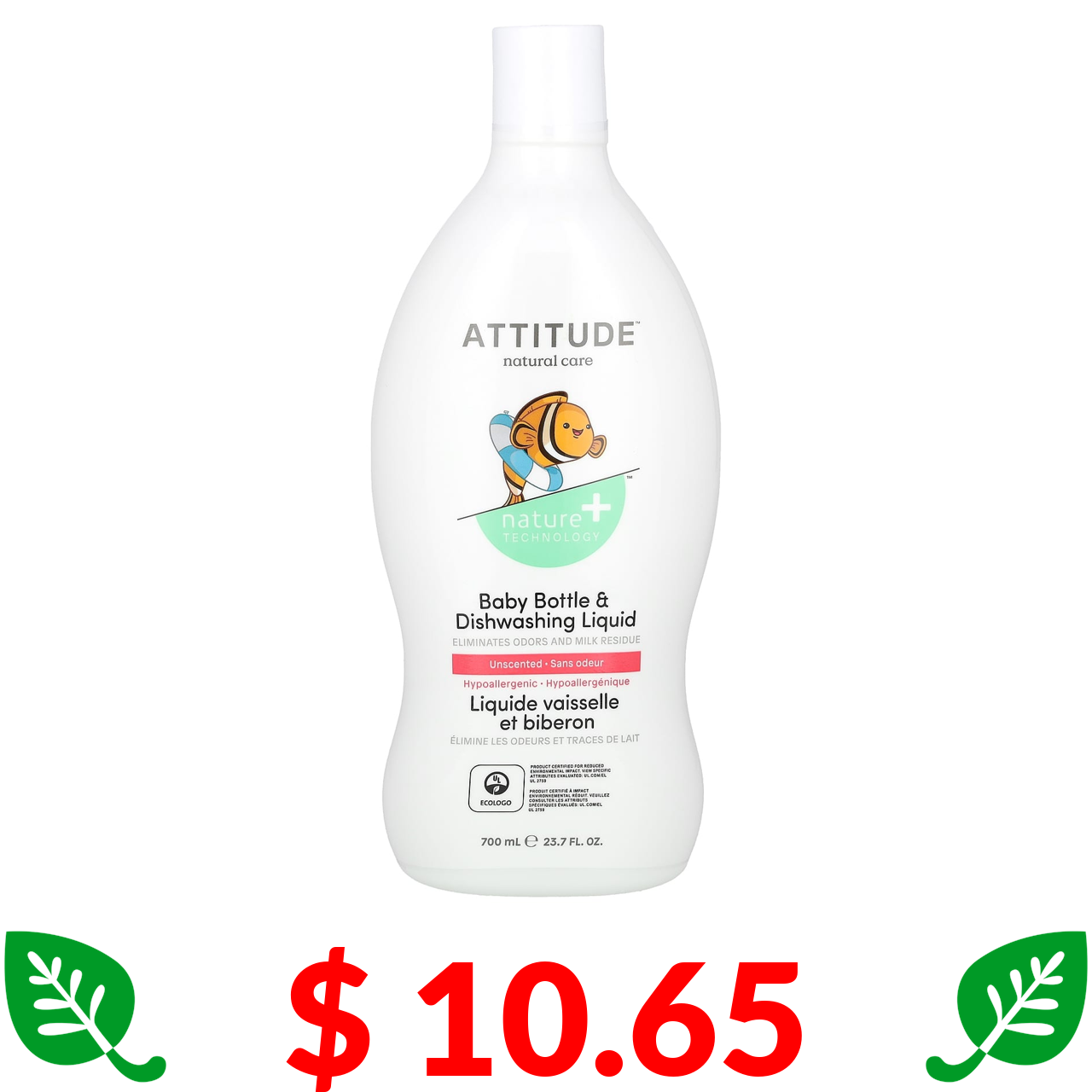 $ 10.65 ATTITUDE, жидкость для мытья посуды и бутылочки, без запаха, 700 мл (23,7 жидк. унции)