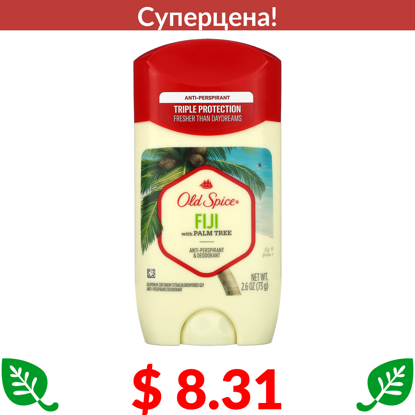 $ 8.31 Олд Спайс, Fresher Collection, антиперспирант и дезодорант, Фиджи, 73 г (2,6 унции)