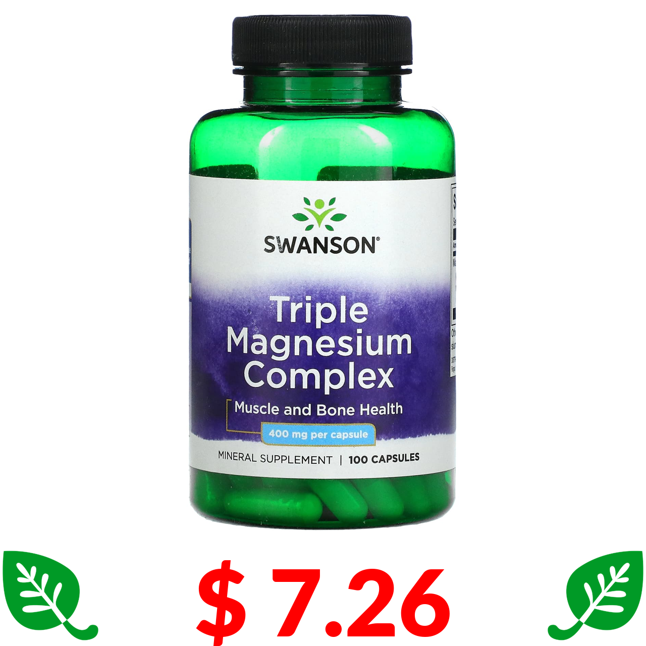 $ 7.26 Swanson, Комплекс тройного магния, 400 мг, 100 капсул