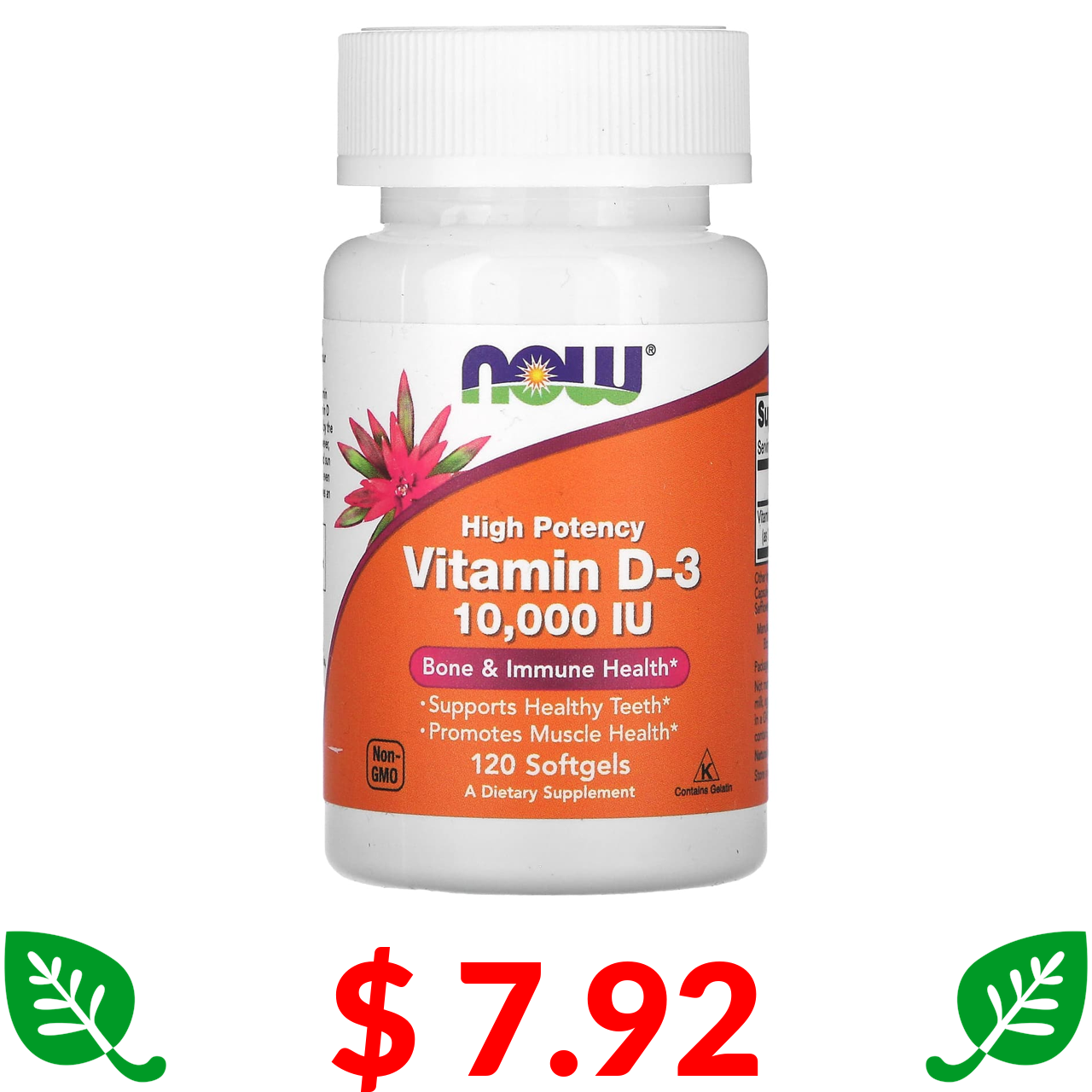 $ 7.92 Now Foods, витамин D3, высокоактивный, 10 000 МЕ, 120 капсул