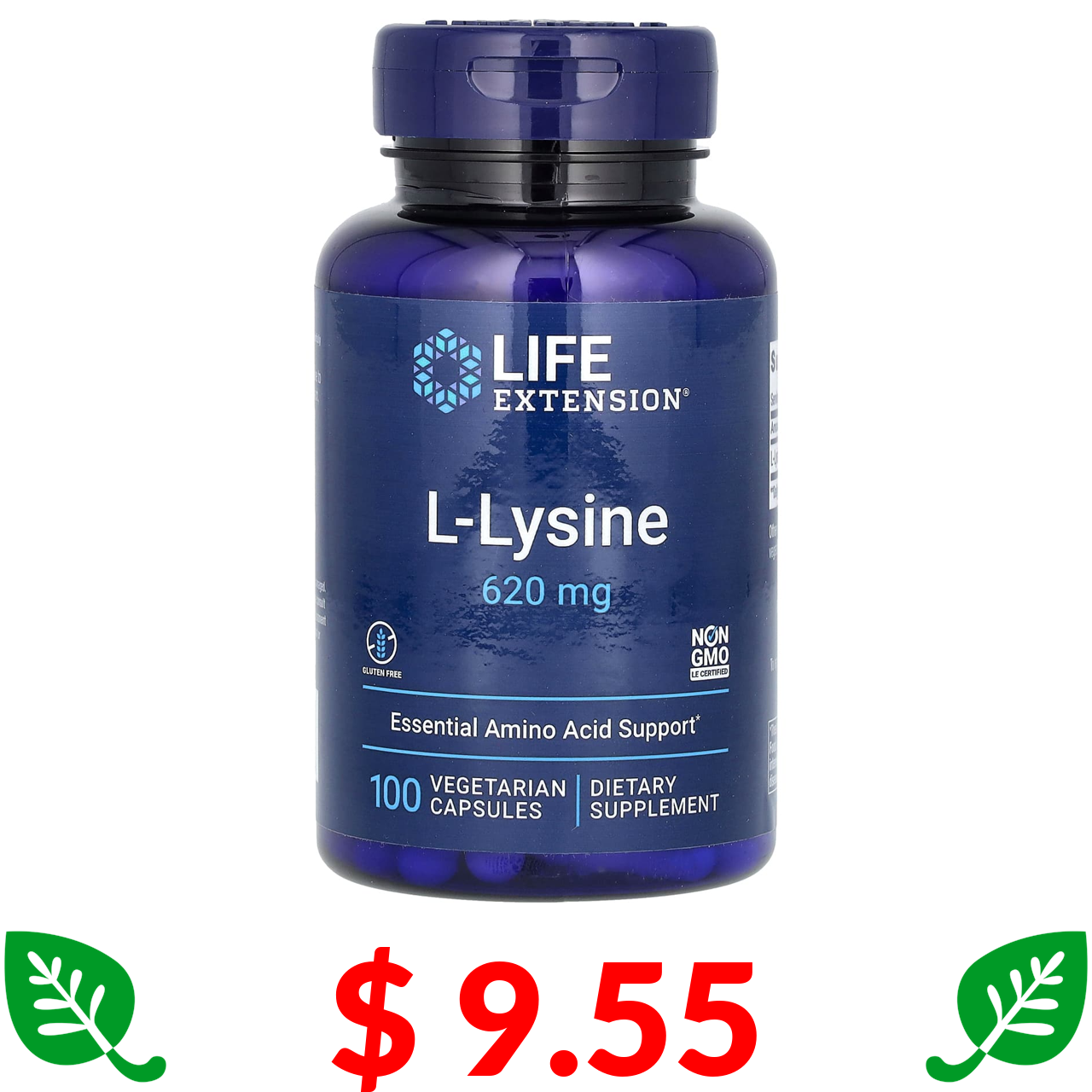 $ 9.55 Лайф Экстэншн, L-лизин, 620 мг, 100 растительных капсул