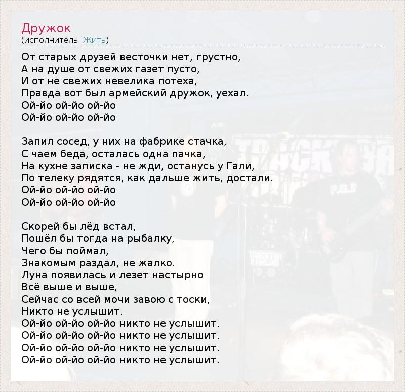 есчастный дружок текст