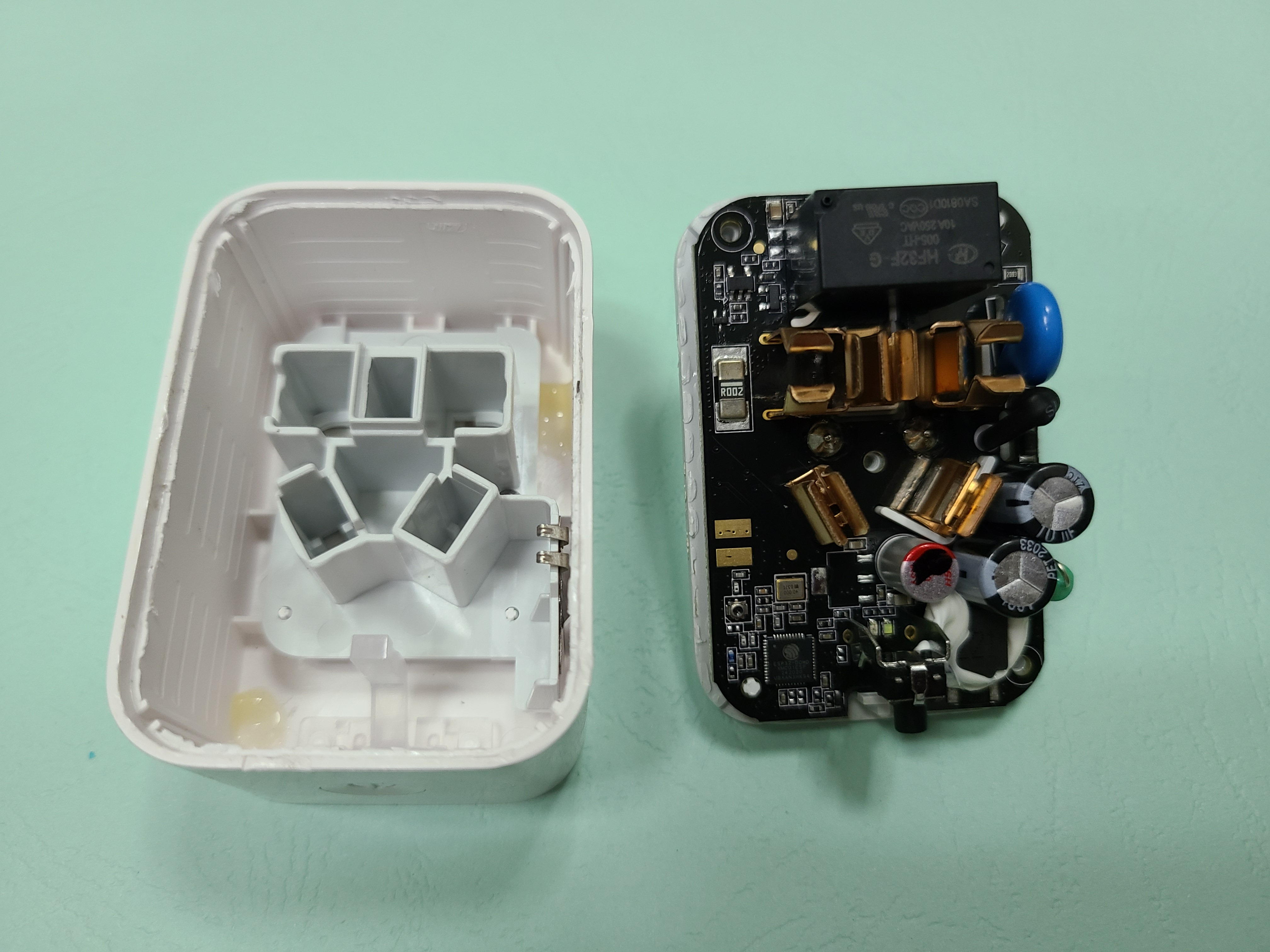 好像是去年在米家看着好玩随手买的,冬天拿来定时关电热毯来着。心想下次用到估计还是冬天,不如研究下?随手网上搜了下,发现数码之家有人试着把自己的拆了,虽然拆坏了但是提供了个很重要的信息:主控是 ESP32.