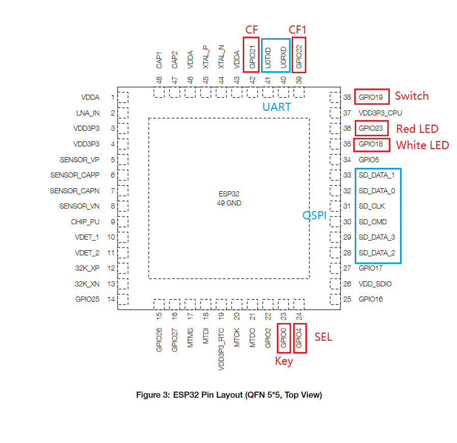 生命不息折腾不止,都拆到这个地步了不来点硬件 mod 真是太无趣了。仔细分析了下板子,板上有几个可以自己随便玩的 GPIO 焊盘(注意 IO2/5/21 在上电时涉及状态检测,IO16/17 是 UART1 没有这些问题)